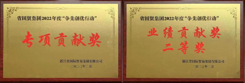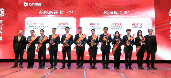 在2月10日舉行的省國貿集團2023年度工作會議上,英特集團榮獲省國貿集團2022年度“先進集體”和“爭先創優行動”專項貢獻獎、業績貢獻獎二等獎等榮譽;應徐頡榮獲“卓越管理獎”,劉瓊、楊謐榮獲“優秀管理獎”,張錦樺榮獲“工作創新獎”,李國璋、姜征、岳從旭榮獲“敬業奉獻獎”,徐進、付紅軍、林漢光、邱陽桂、盧香海榮獲“突出業績獎”,黃子涵、郭尚鑫榮獲“最佳新銳獎”。