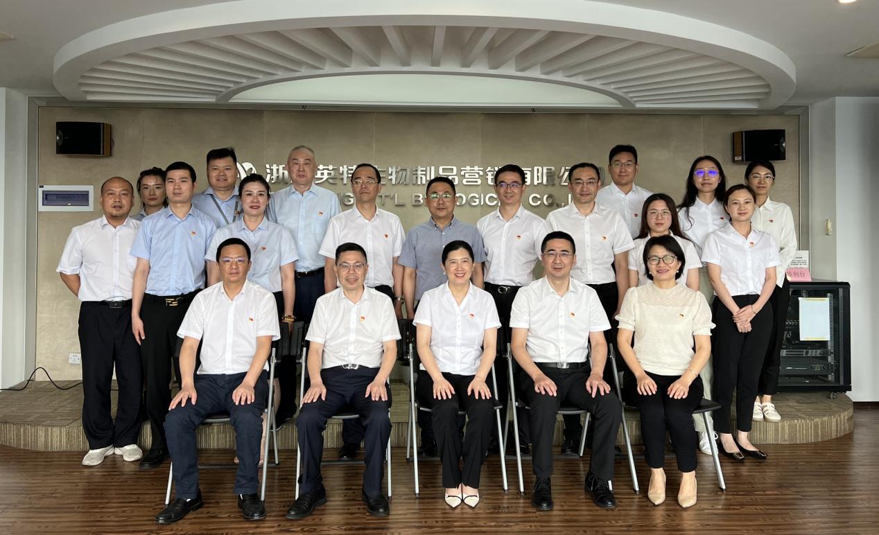 7月4日下午,省國貿(mào)集團黨委委員、副總經(jīng)理金朝萍一行來英特集團下屬英特生物開展主題教育專題黨課宣講。國貿(mào)集團總部第六支部全體黨員,英特集團黨委副書記、工會主席楊永軍等領導及黨群工作部、英特生物相關人員聆聽宣講。
